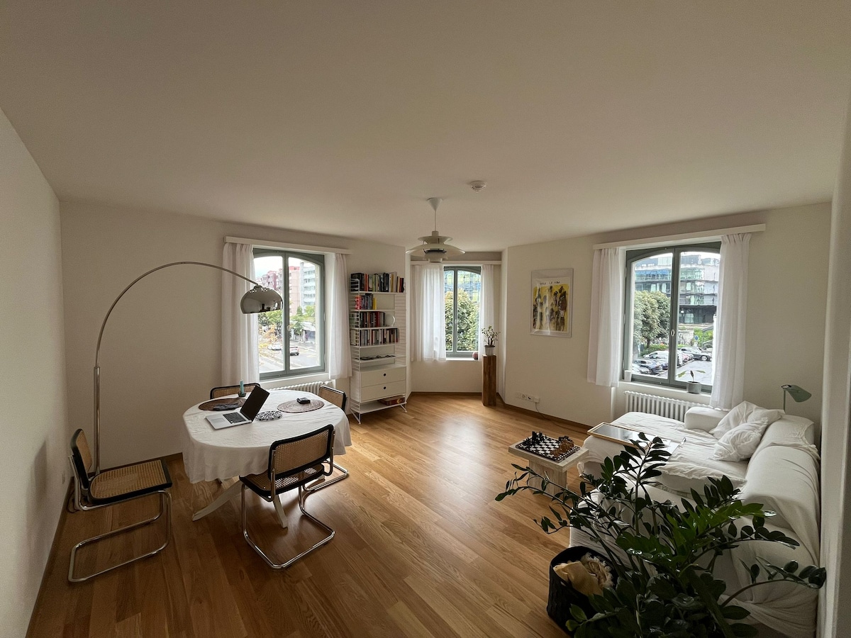 Just 2 minutes from Zug train station, this modern apartment has one bedroom to accommodate up to 2 people. The bedroom offers a peaceful spot and features a perfect office setup. The spacious living room is ideal for relaxation, and the fully equipped kitchen opens to a large terrace, perfect for outdoor dining or lounging. The bright bathroom has a window for natural light. This apt is perfect for business or leisure with supermarkets and restaurants nearby.