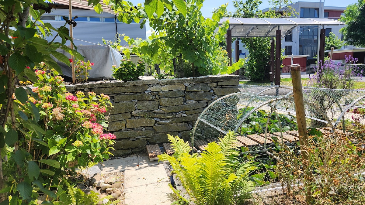 Peace, Privacy & Comfort – 5 minutes from Baar Center Discover a spacious, lovingly furnished studio with a private entrance, terrace, bathroom (toilet/shower), and a cozy dining area—perfect for both business and leisure stays. Restaurants, grocery stores (Coop, Migros, bakery, etc.) are conveniently located in the city center. Enjoy the best of both worlds: surrounded by greenery yet centrally located. Explore scenic forest trails, and take in the unique views of Lake Zug, just minutes away.