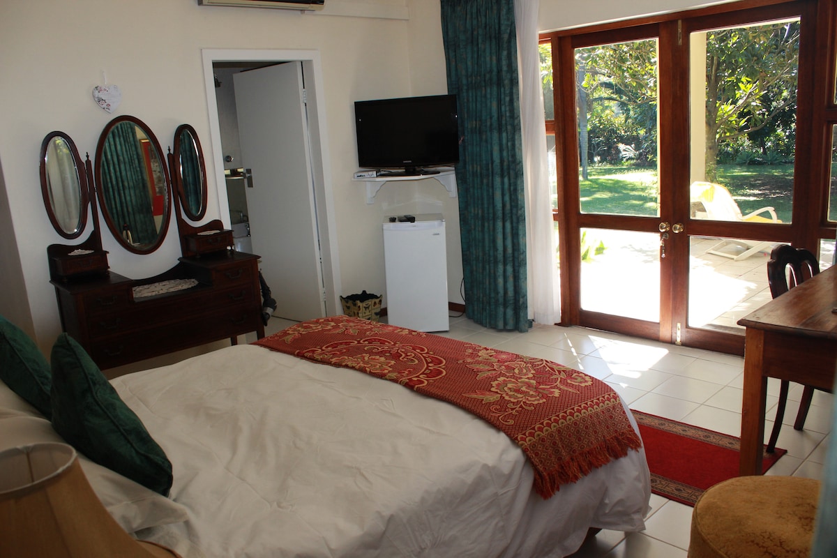 Stay in a comfortable room for a real ‘home away from home’ atmosphere. With a private entrance the room is tiled throughout. The comfortable double bed has a duvet with high quality Egyptian linen. An en-suite bathroom provides a toilet and shower.