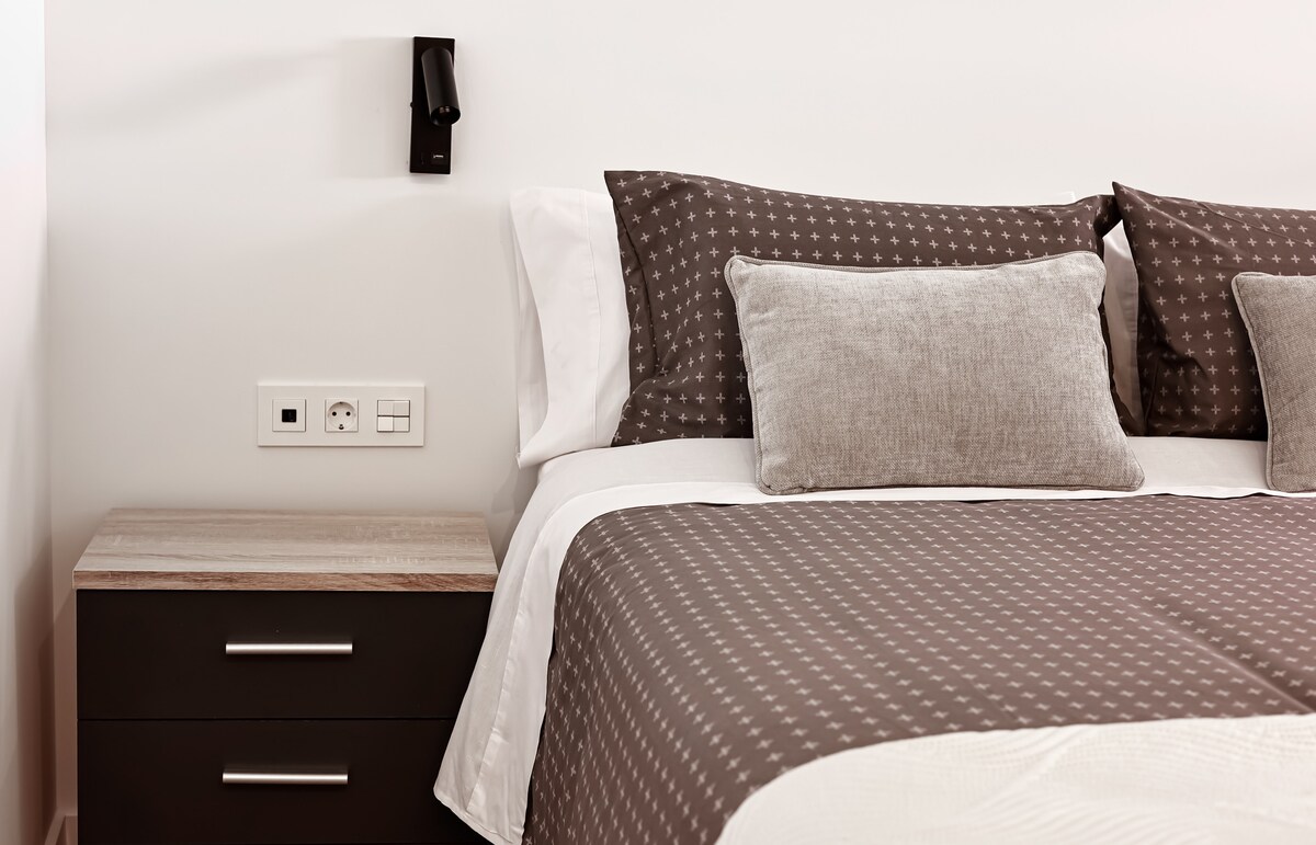 De estilo urbano y acogedor, este nuevo apartamento de un dormitorio con cama kingsize y sofá cama (144x180cm)se encuentra en el corazón del barrio de Gros, a 1 minuto a pie del centro de la ciudad Impecablemente recién reformado cuenta con aire acondicionado, televisión 55", Wifi, Nesspreso. Completamente equipado para niños y bebés. Perfectamente ubicado a 2 minutos de la estación de autobuses y de trenes, así como al lado de una parada directa de autobús para el aeropuerto de San Sebastián.