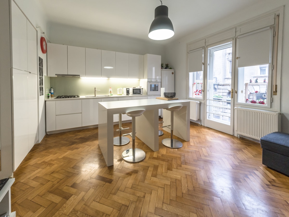 Escape to our calm, renovated one-bedroom apartment in the heart of Zagreb. This bright, airy retreat on the first floor comfortably fits 2-3 guests. Features high ceilings, a dedicated workspace, and modern amenities. Perfectly located just an 8-10 minute walk from the Main Square, Zrinjevac Park, and top attractions. Enjoy the perfect blend of city access and peaceful comfort.