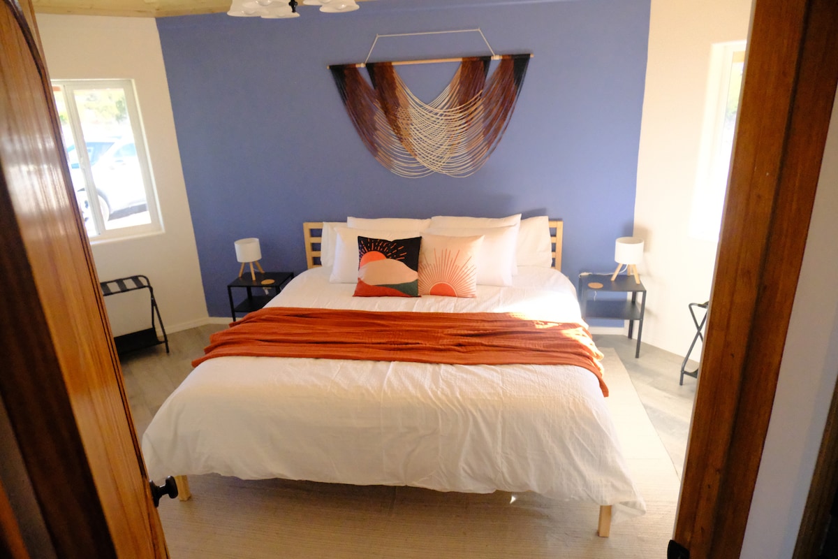 This is our Cozy Brand New 2021 Home. 1 BR/1 BA. Perfect for 2 Adults or a small family of 4. Queen-size Hybrid mattress in BR & the Sofa has a queen foam mattress. Washer and dryer. Quiet neighborhood just a block off Main Street. Fast WIFI. 40" Visio TV with free channels. Redwood deck with a lovely view. Can walk to stores, restaurants and park. Come kick off your shoes & enjoy the cool weather. Complementary bottled water, laundry soap & dryer sheets.