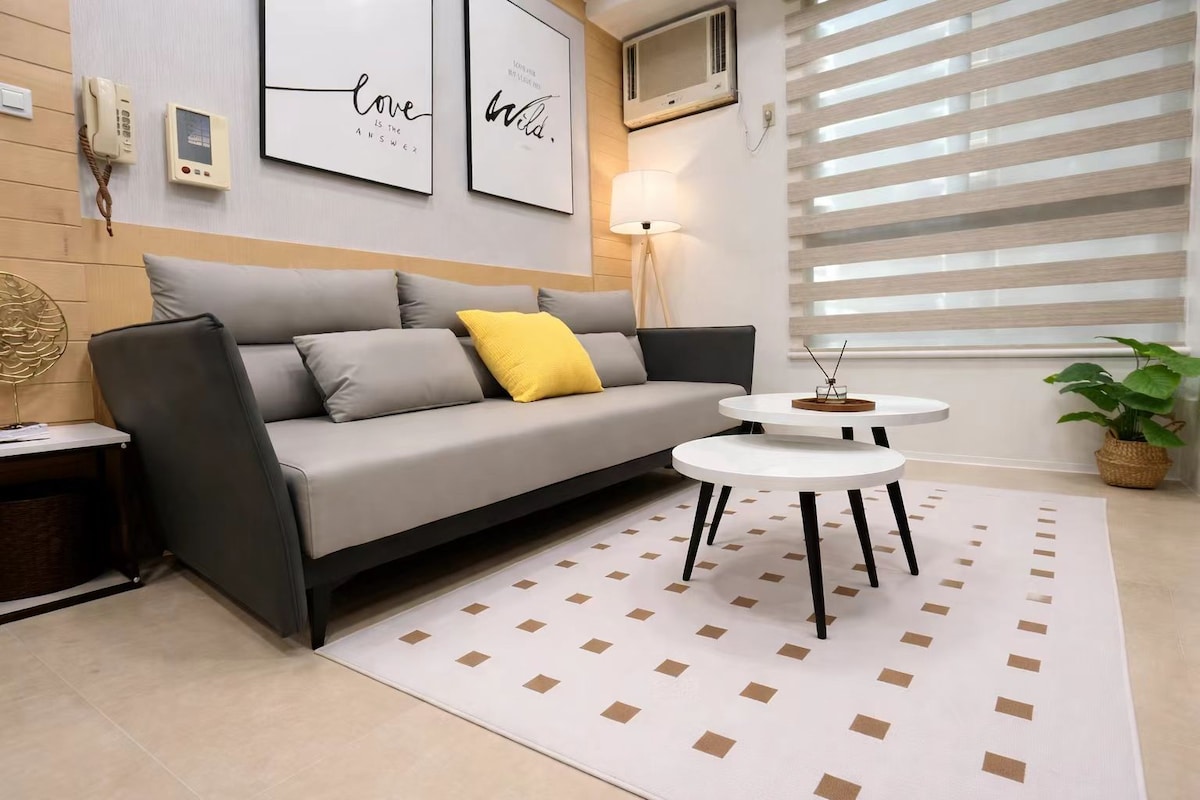 *獨享整個房源,一次只接受一組房客,無其他房客。 *2房1廳1衛1陽台,分離式冷氣,數字電子門鎖,掃拖地機器人,手動免治馬桶。有製造冰塊功能的大冰箱,全新逆滲透膜RO純水機,有Brita冷熱飲水機,有洗脫烘乾衣機,全屋重要場所有自動感應燈,夜晚起床感應亮燈,不會有黑暗危險時刻。 * 廚房不可開伙,有簡易設備,微波爐。 * 客廳有智慧電視 (58吋全新智慧連網電視),附有Bose SoundBar音響,可觀看YouTube 與Netflix節目(需有帳號),網路300 Mbps。 *注重旅客安全與住宿品質,尤其適合長租者,生活所需一應俱全。 * 樓下對面有24小時便利商店,樓下有ubike 腳踏車出租站,附近有付費汽車停車場,也有捷運,輕軌車站,商店餐廳多,全聯大賣場1km,好市多1.4km。美術館1km。