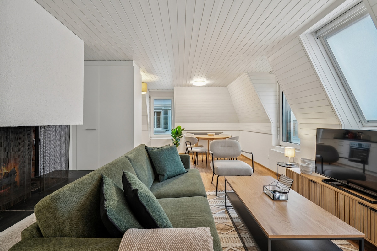 Die Chalet Suite im Herzen von Zürich ist direkt neben der ETH, der Universität und dem Universitätsspital gelegen. Diese großzügige Wohnung im fünften Stock eines denkmalgeschützten Altbaus kombiniert modernen Wohnkomfort mit alpinem Flair - ein Zuhause wie in den Schweizer Bergen. Hier genießen Gäste eine perfekte Mischung aus Gemütlichkeit, Komfort und alpinem Bergflair.