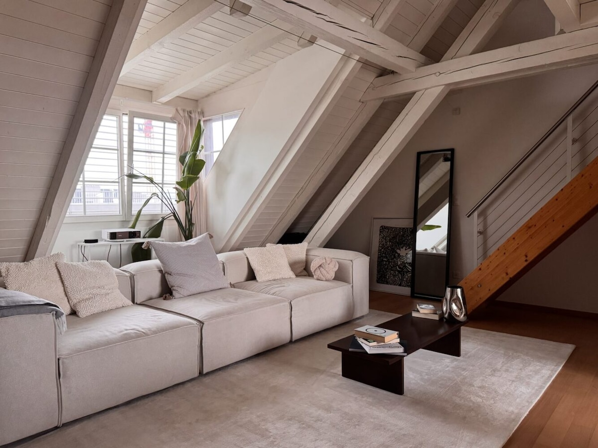 80m2 quiet, brand new serviced loft, with spectacular view & modern furnishing at the most central point of Zurich, in front of the marina. Few meters walk to luxury downtown shopping, top restaurants/bars, the lake, the main station. Apartment in front of the river protected from noise, in the most elegant, high-end spot downtown. Supermarket, pharmacy etc. around the corner. Top multimedia with giant TV, BT speakers, Netflix, Amazon, Disney+, air-condition, smart lights for perfect ambience!