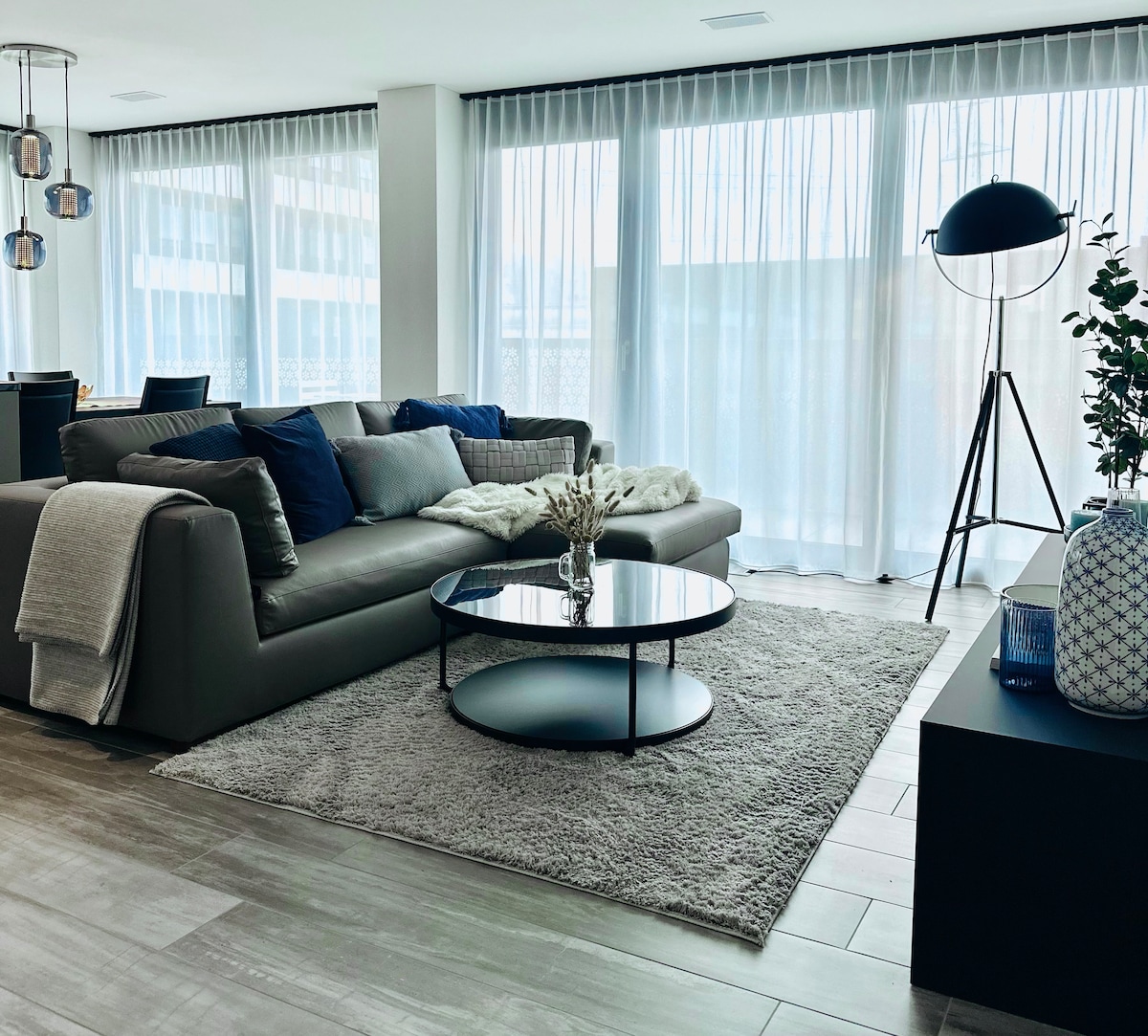 Luxuriös gestaltete Wohnung im Herzen von Glattbrugg, gut angebunden an die Autobahn und das öffentliche Verkehrsnetz der Stadt und des Flughafens (Obwohl es nur 5 Autominuten vom Flughafen entfernt ist, ist die Schalldämmung der Wohnung sehr gut und man hört den Lärm der Flugzeuge im Innenbereich nicht.) 3 Gehminuten von den beiden Bahnhöfen entfernt können Sie die Stadt und ihr Nachtleben erkunden, Supermärkte, Restaurants und Fitness befinden sich auch in der Nähe.