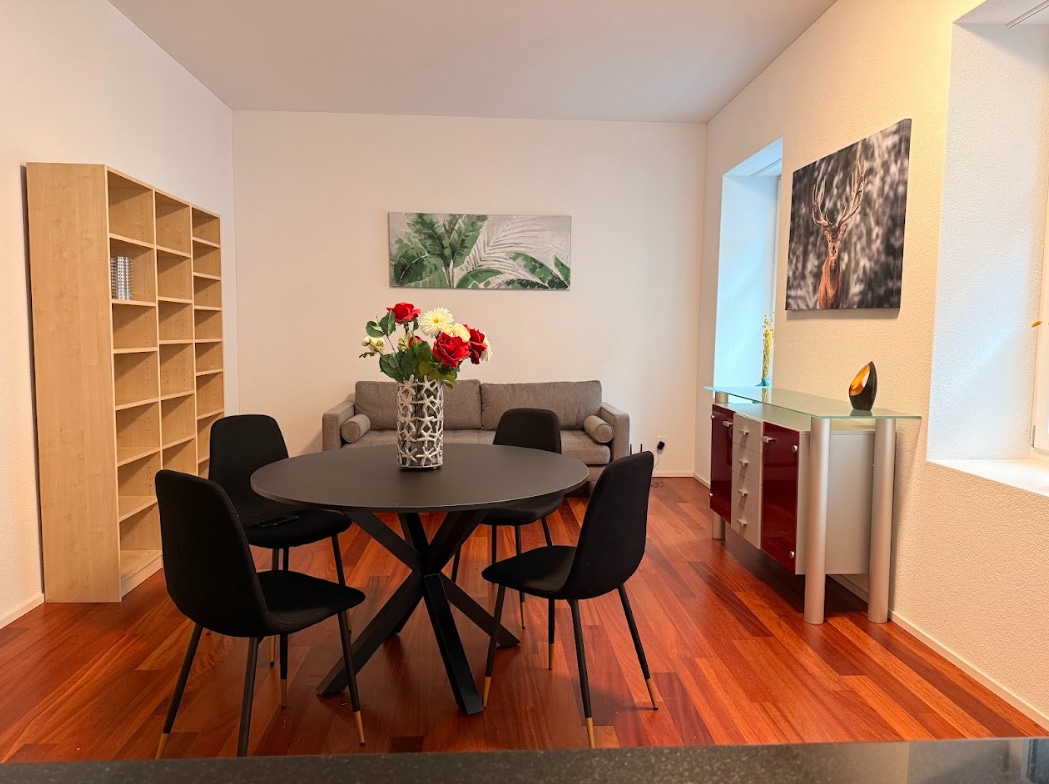 🌟 Consistently 5★ rated apartment by all guests! 🚌 It is just a 3-minute walk from the nearest bus stop and 10 minutes by public transport to Zürich Airport ✈️ and Main Station. ✨ Immerse yourself in modern elegance as you enter this beautiful apartment. 🛋️ Meticulously attended to, every detail ensures your comfort. 🏡 Fully furnished with 101+ essential items, it's your home away from home. 🌿 Balcony space adds extra charm. 🛗 Complete with a lift, it is a wheelchair-friendly space.