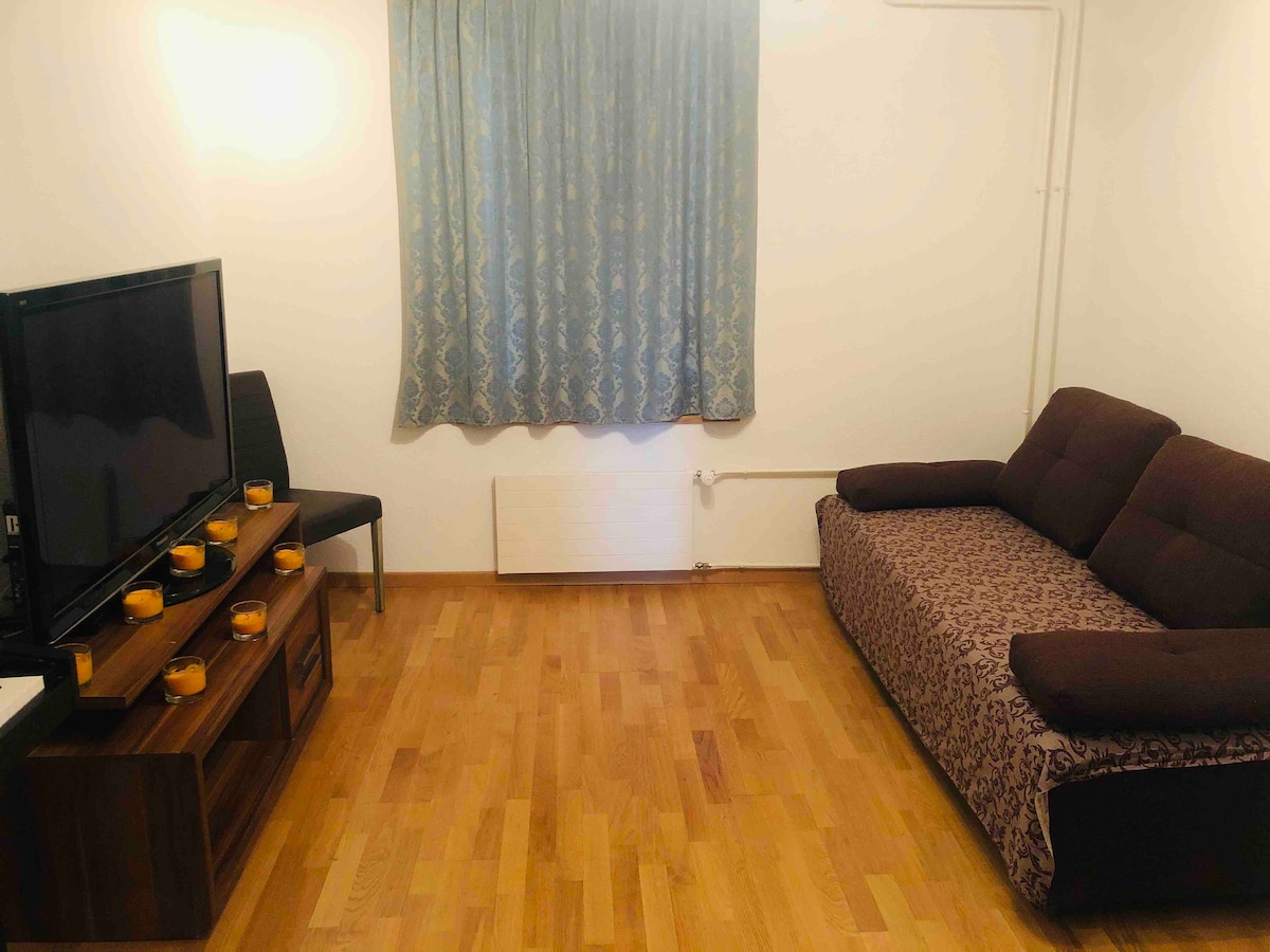 Diese gemütliche Wohnung mit schöner Terasse bietet Platz für 1-2 Personen, Geschäftsreisende oder Kurzurlauber. Die voll ausgestattete Küche ermöglicht es Ihnen, Ihre Lieblingsgerichte zuzubereiten. Das extra große Sofa ist kein gewöhnliches Sofa , es ist mit einer hochwertigen Topper-Matratze ausgestattet und bietet denselben Schlafkomfort wie ein richtiges Bett. Ideal für erholsame Nächte – auch zu zweit! Heisses Wasser, Dusche und Badewanne, Wäsche Trockner sind vorhanden.