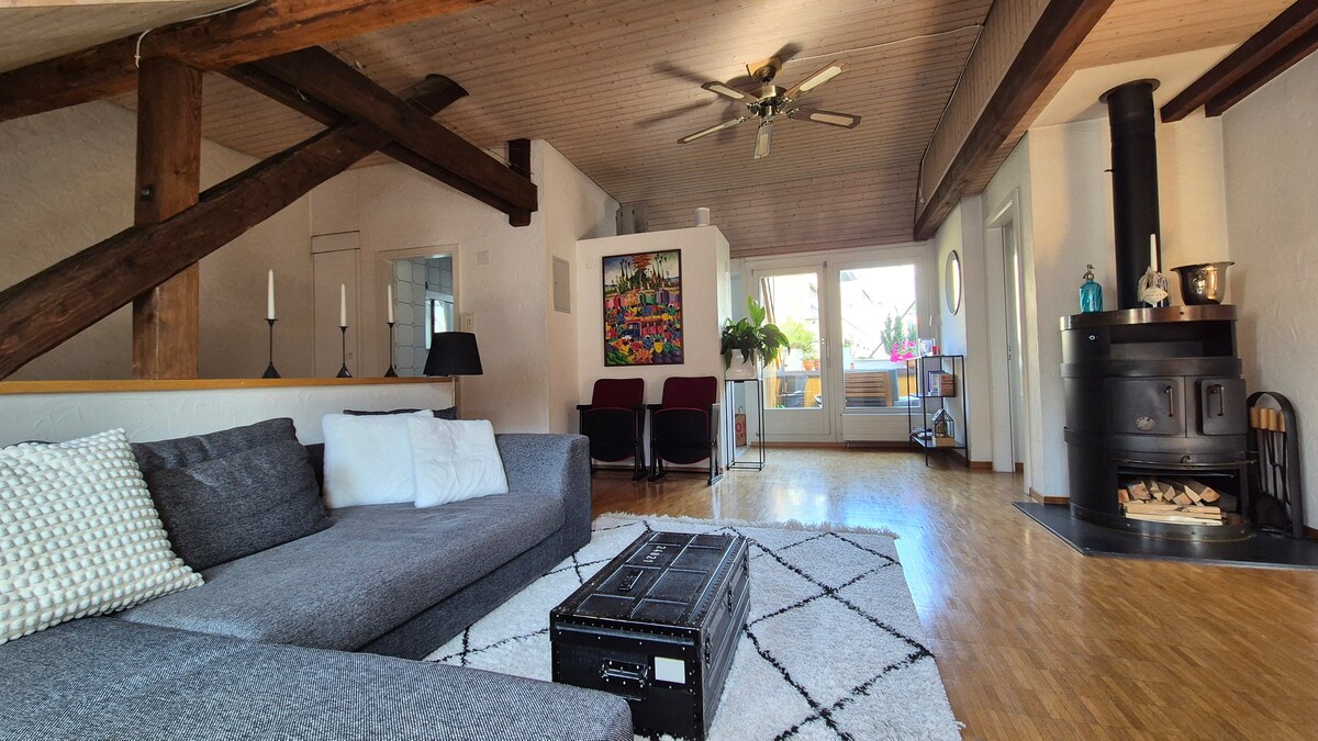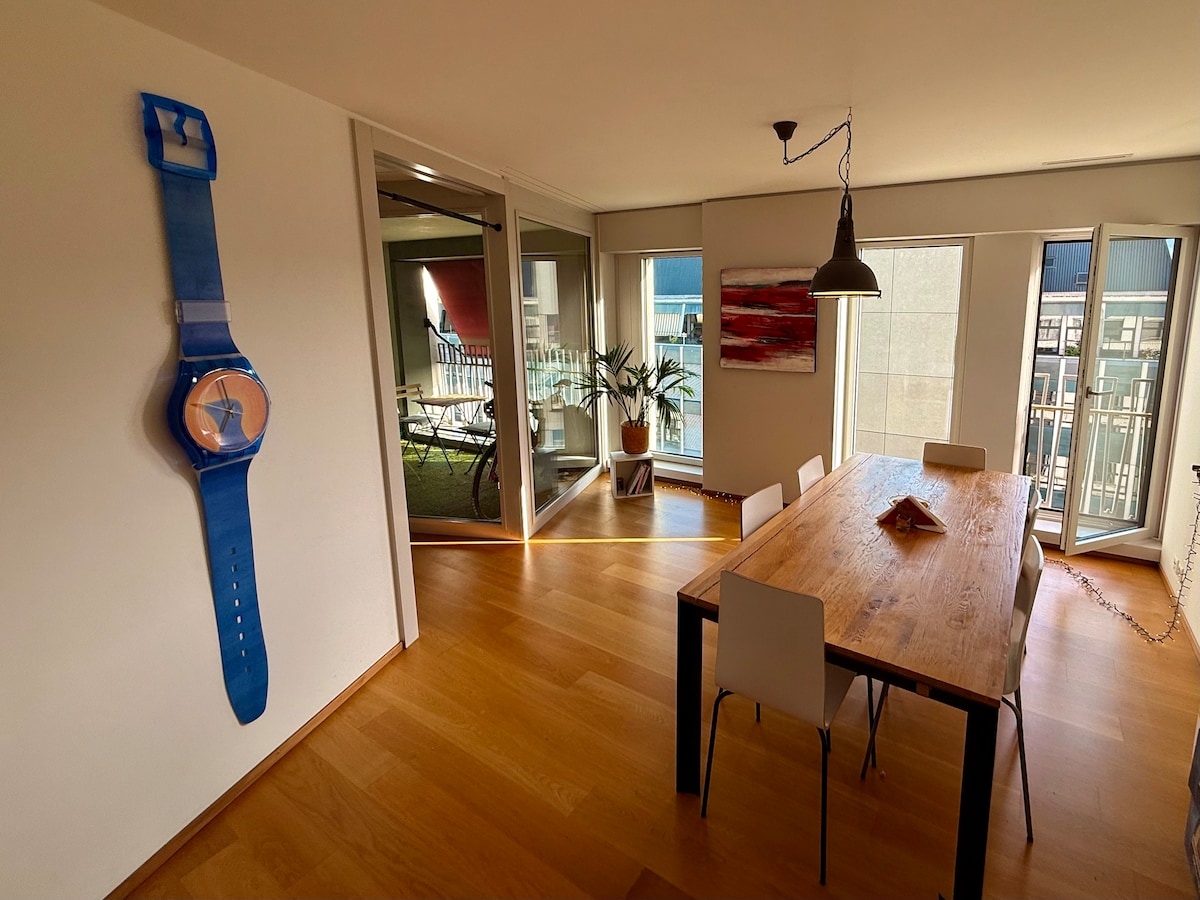 Charming Top-Floor Apartment in Prime Location – Just 7 Minutes from Zürich Main Station. You'll enjoy a spacious living room with a Swedish fireplace, a sunny balcony with a lounge area, a modern kitchen equipped with a dishwasher and coffee machine, and a bathroom featuring a bathtub, washing machine, and dryer. Restaurants, bars, shops, the Limmat River, and Lake Zürich are all within easy reach. Perfect for anyone looking to explore Zürich in style.