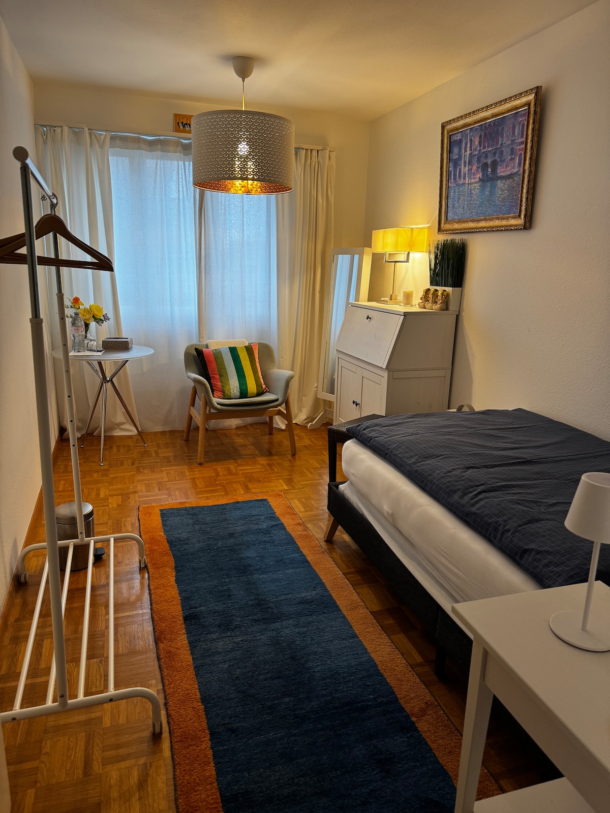 Un rifugio tranquillo a soli 15 minuti dal centro di Zurigo. Situato in una posizione ideale, con il tram che si ferma proprio davanti alla porta di casa e ti porterà al centro città in soli 15 minuti. La casa offre anche di un sorprendente un giardino nascosto, perfetto per rilassarsi o lavorare all'aperto. All'interno, troverete un elegante mix di design moderno con tocchi di metà secolo , che danno all'ambiente un carattere unico.