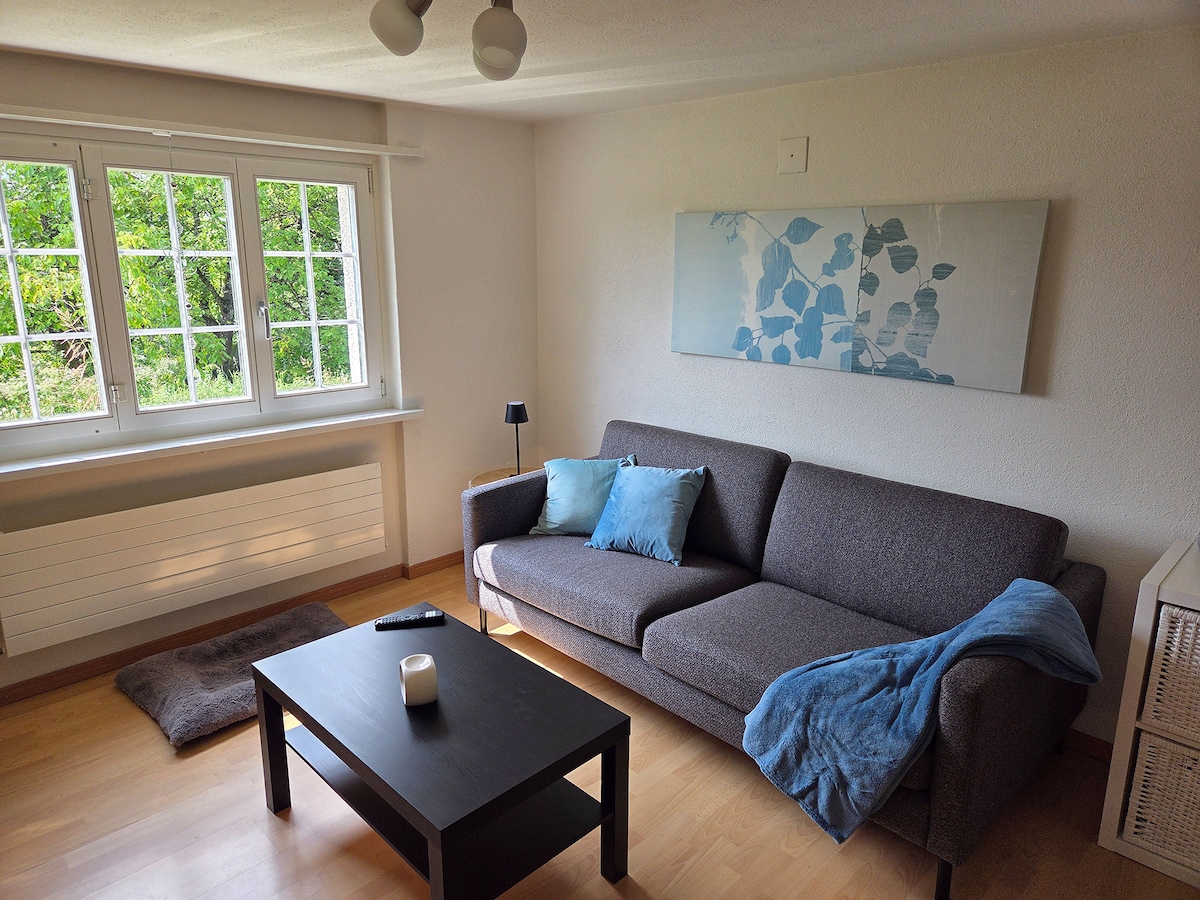 Comfortable apartment with one bedroom (160x200cm), a dressing room/study, and a cozy living room. The living room can be converted into an additional bedroom (2 beds 80x200cm or 160x200cm) The apartment also features a well-equipped kitchen, a bathroom with a shower, and a small terrace. Centrally located. By train (running every 15 minutes), you can reach central Zurich in just 25 minutes, and Rapperswil in 10 minutes. We look forward to welcoming you!