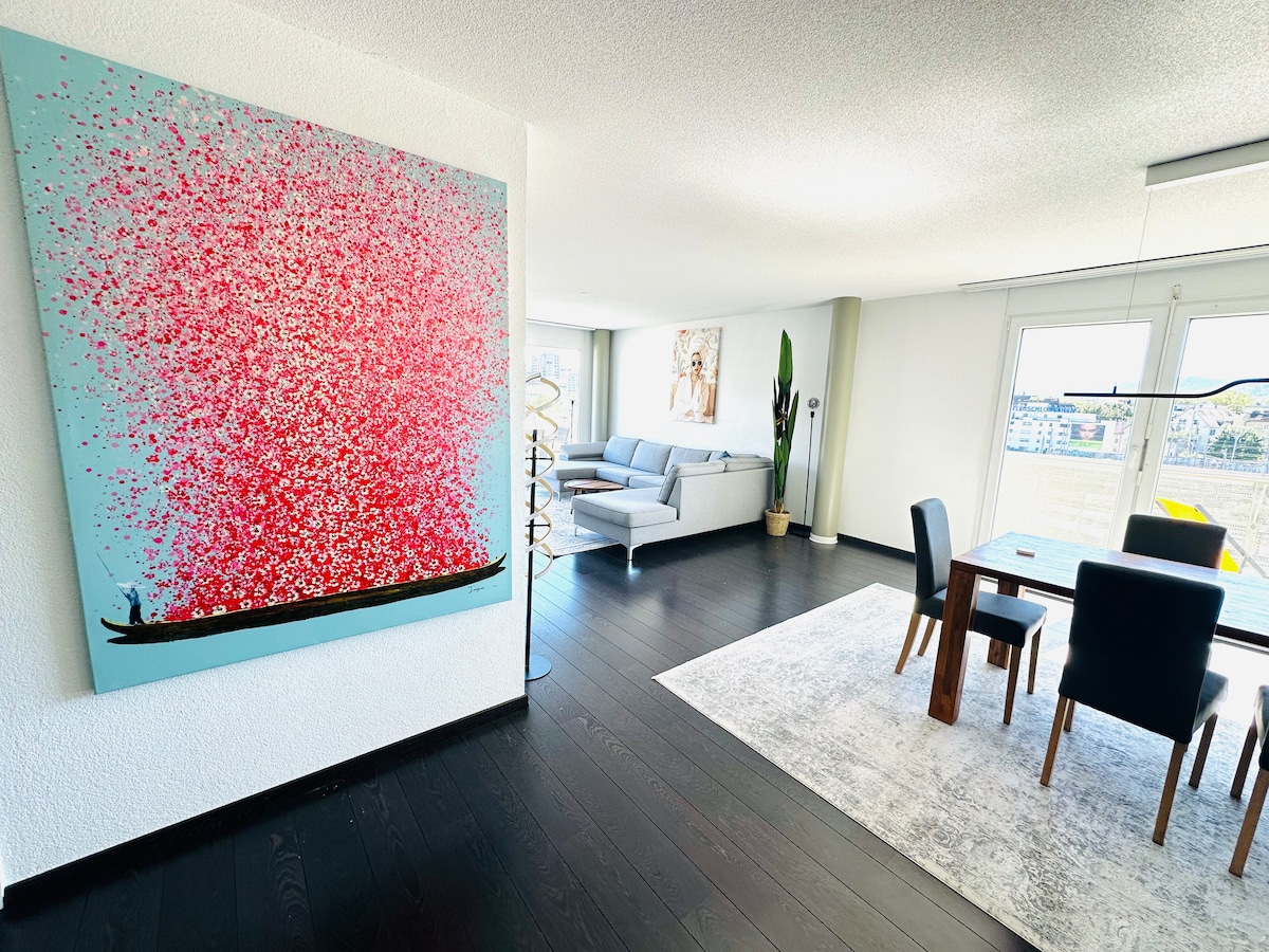 This newly finished modern apartment boasts an unbeatable location. Just a 5-minute drive from the airport and a 2-minute walk to train and bus stops, as well as charming coffee shops, restaurants, and groceries. Enjoy the convenience of a quick 15 minute train ride to the center of Zurich city. Perfect for travelers seeking comfort and accessibility, including families. The new building features all modern amenities for an exceptional stay. Kind hosts on stand-by for questions & recommendations