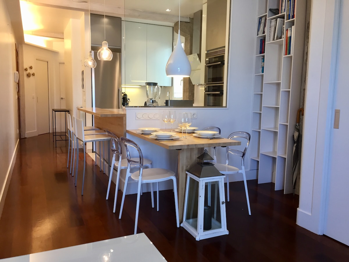 Eclectic and modern style, in this apartment live classic and current pieces. Strategically located in the neighborhood gros (trendy area in San Sebastián), second line from the Zurriola beach. The apartment is exterior, with open views and side sea views, brightness and quietness. 2 min (walking) to Kursaal Congress Palace, and 7 min to Old Town (Parte Vieja). Its location is perfect. In this area you can find all the services like shops, drugstores, pintxos bars, restaurants, etc. FREE WIFI/AC