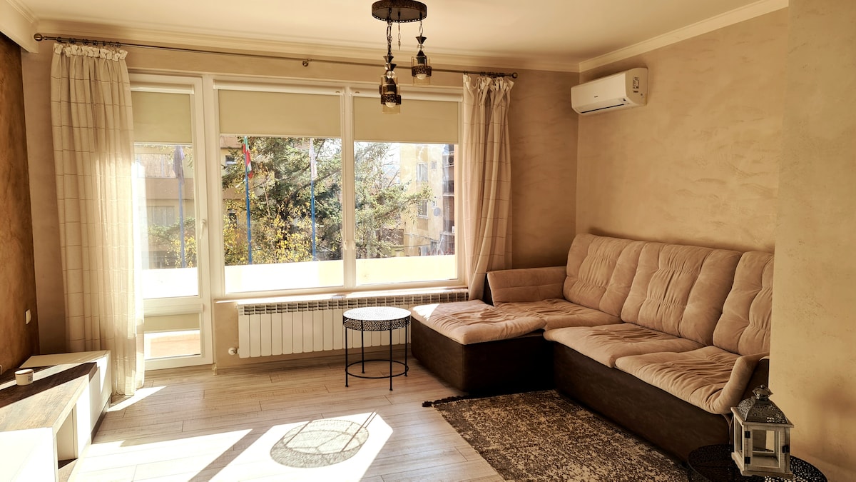 Welcome to my nice apartment in Targovishte. Excellent location, within walking distance (1-3 minutes) there are cafes, restaurants, shops, snacks, public transport, hospital, police. The city center is a 10-minute walk away. It consists of two bedrooms, kitchen, bathroom with toilet and 2 terraces: The first bedroom has a double bed, the second with 2 single beds has a sofa bed. Convenient seating area and large TV. - fully equipped kitchen with all the necessary utensils and cutlery.