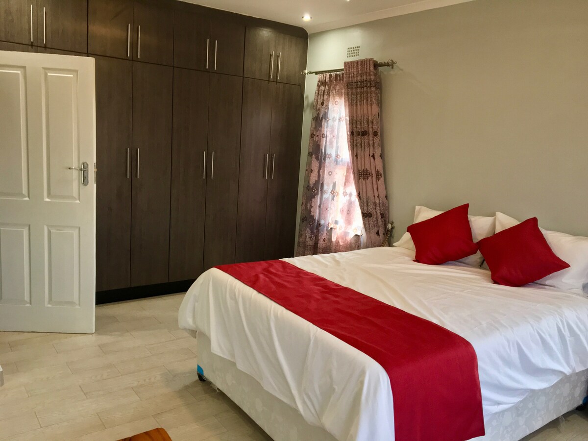 Contemporary family-friendly home featuring beautiful and spacious rooms and great outdoors. Bring the whole family/friends to this great place with lots of room for fun. Mac Holiday Home comes with a swimming pool, unlimited internet (broadband) and borehole water. Also has solar back-up power, in case of power-cuts but these are rare in our area