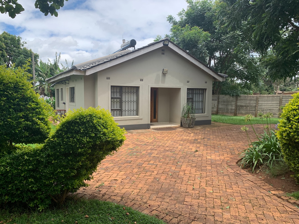 Berony Guesthouse is a very neat 2 bedroomed cottage with 2 bathrooms and a dedicated office space. The master bedroom features a lovely clean ensuite bathroom. The guesthouse has a fully functional kitchen with several appliances, borehole water, a reserve water tank and a Solar backup making it suitable for long stays. It is near Westgate Shopping Mall and the American Embassy and is suited in a nice and safe neighbourhood. This is truly a home away from home!