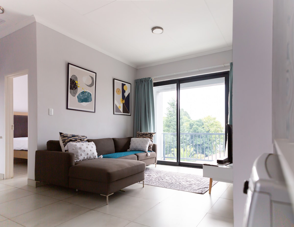 Stylish, light & bright apartment in a golf estate with 24 hr access control and security, golf course, no load shedding, wi-fi and tv with Netflix. Fully equipped kitchen with Smeg oven. The Clubhouse on the Golf Estate has beautiful views with a great restaurant, squash & tennis courts. Irene African Pride Country lodge & Camdeboo Day Spa is 2,6km away Unitas Hospital 7,7km and Midstream Mediclinic 8,4km. Super Sport park 4,3km Gautrain, 3.2 km and International airport 41km (35 minutes)