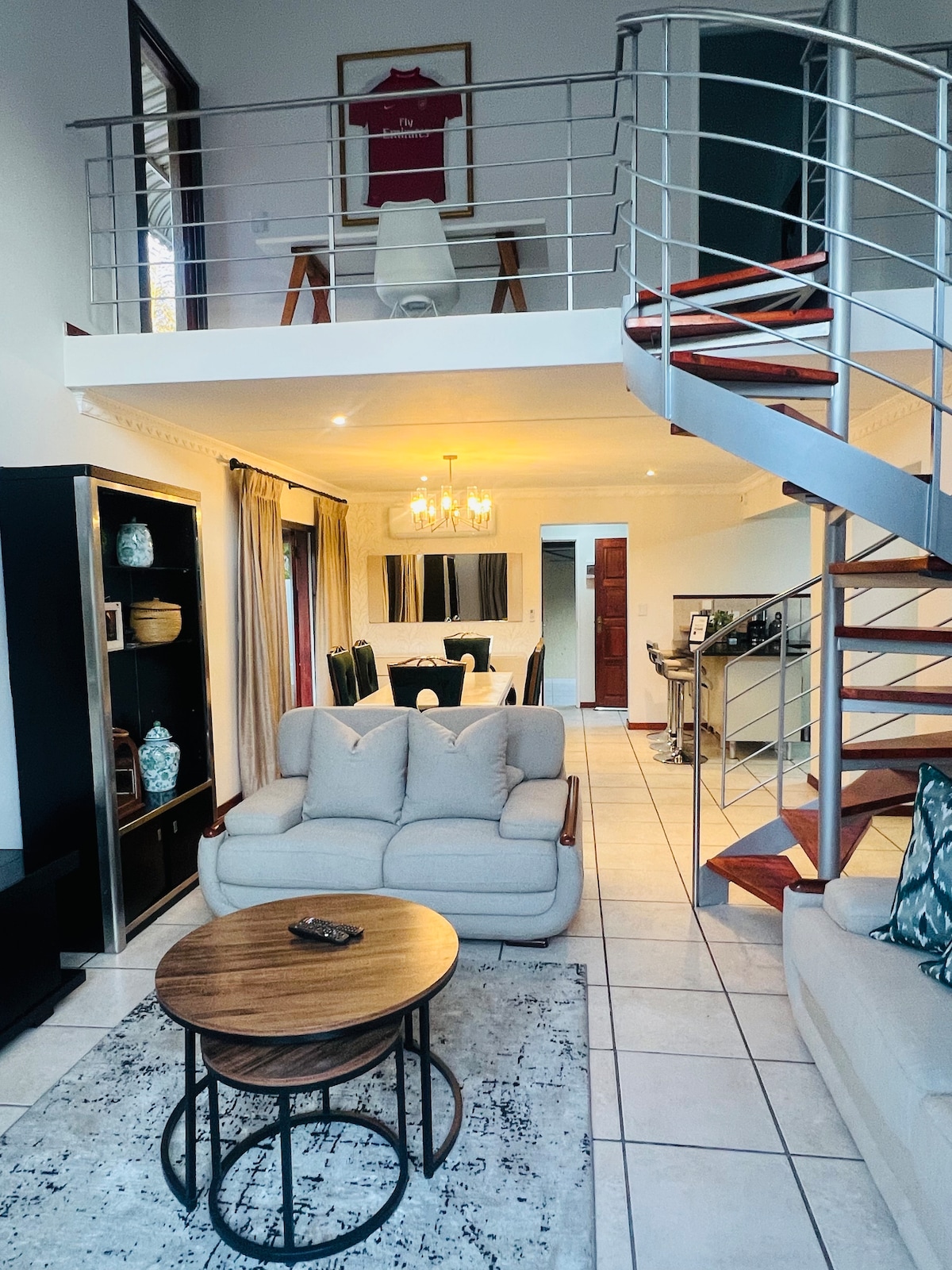 Ideal place to stay during December holiday! Enquire now for a Dec holiday longstay deal. This home includes modern finishes with a sweeping staircase leading to a work space. Both bedrooms have ensuite bathrooms, 1 with a queen & the other with a king bed. An urban-chic kitchen & open plan living area opens to a patio & manicured garden. Extra matrass available for kids. This home boasts top security & pets are welcome. Lighting, TV & wifi is on back up power. Wifi,Netflix,DSTV,Showmax,YouTube
