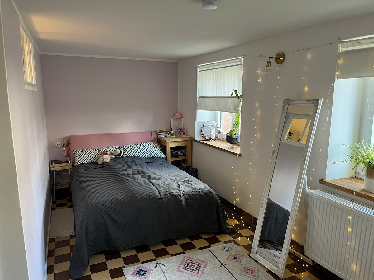Genieße das einfache Leben in dieser ruhigen und zentral gelegenen Unterkunft. Sie wohnen auf der Rückseite des Hauses, sehr ruhig gelegen. An der Vorderseite befindet sich eine Gastronomie mit sehr gutem Angebot und schönem Biergarten. Die Wohnung hat alles was man braucht. Fußbodenheizung, Klimaanalage, TV, Wlan, Dusche, Waschmaschine, Trockner, Senseo Maschine, Kühlschrank, Toaster, Mikrowelle, Wasserkocher, Schlafcouch, Bei offenen Fragen einfach anschreiben