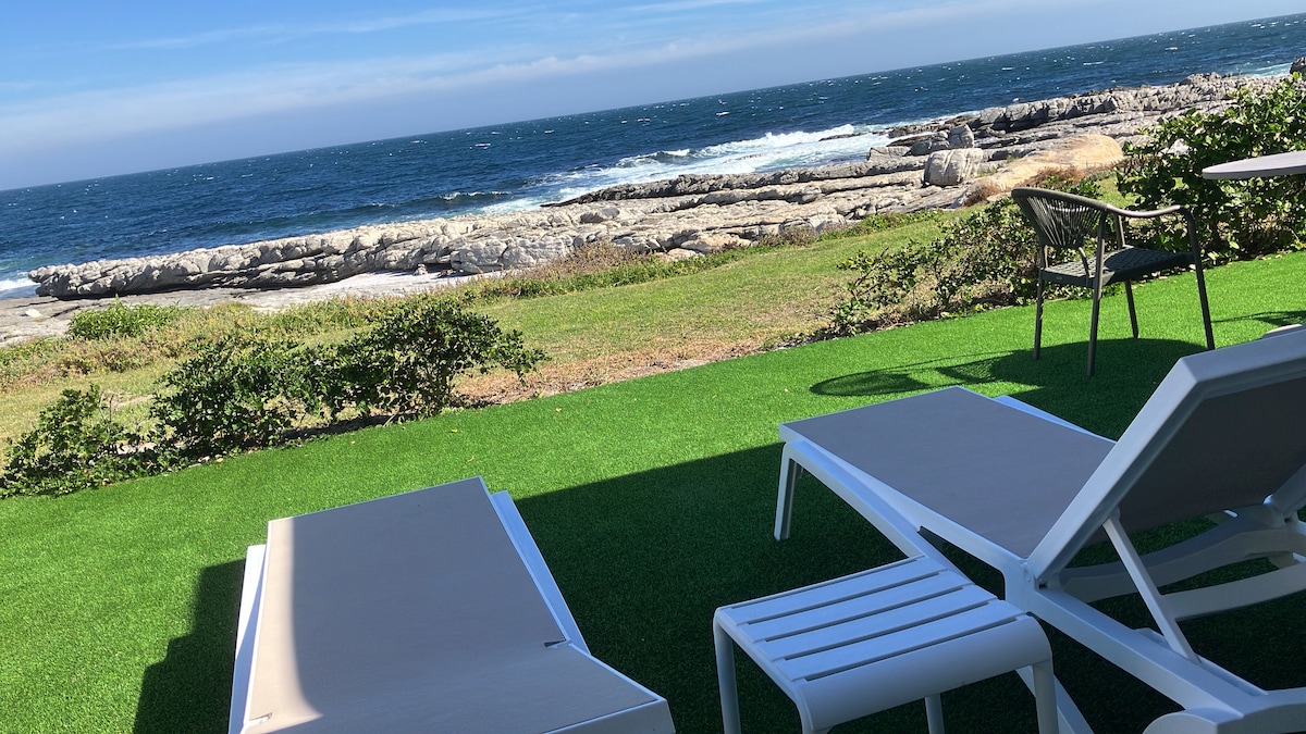 This stunning apartment has the loveliest view of Walker Bay brimming with sea life and rich with the Champagne air.The decor is absolutely lovely and the apartment is extremely well equipped. The sea views are especially good from the balcony upstairs. A lovely place to unwind after a day of exploring our beautiful Hermanus and all it has to offer. The cliff paths, restaurants, art galleries are within 2 mins. walk. There is plenty safe off road parking & a lovely private built in braai area .