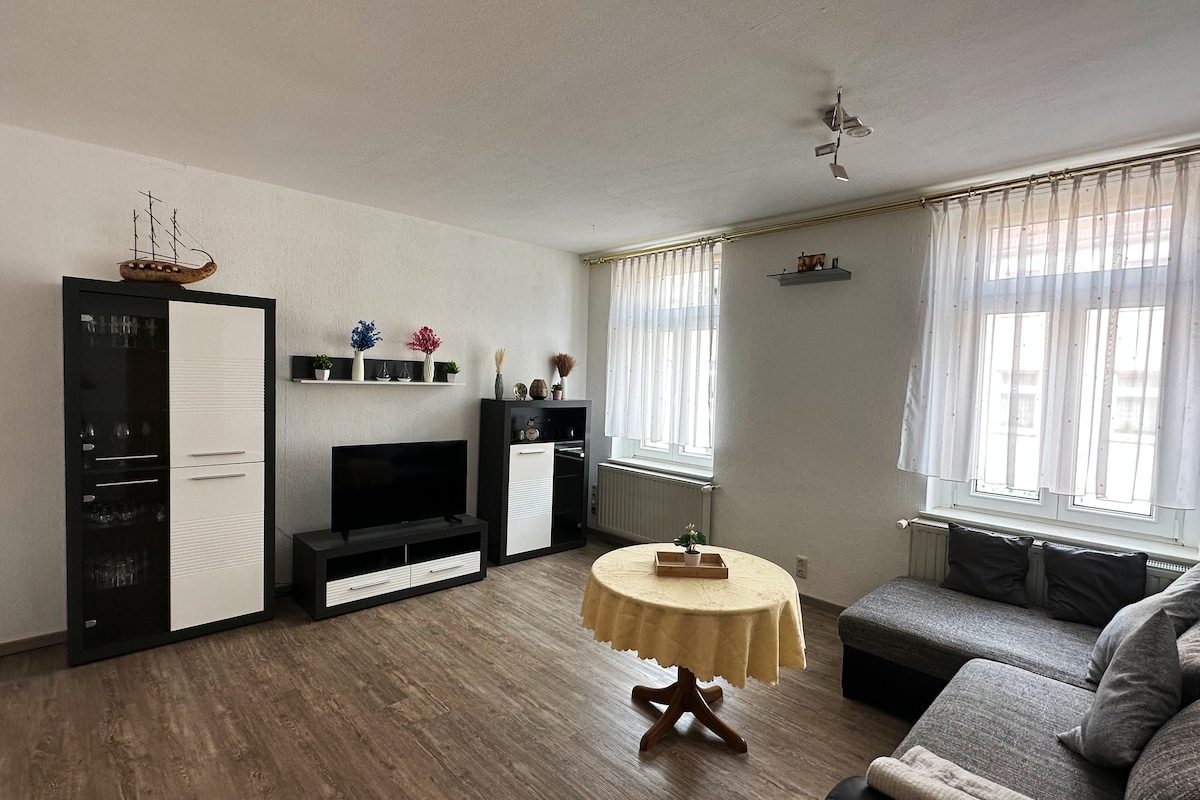 Gemütliche 2-Zimmer Wohnung in Zentrumsnähe. Supermarkt, kleiner Kiosk, Eisdiele und Krankenhaus um die Ecke. Öffentliche Verkehrsmittel 5 bis 10 Minuten zu Fuß entfernt. Plauener Innenstadt in 10 bis 15 Minuten fußläufig erreichbar. Wir bieten eine voll eingerichtete Wohnung, die perfekt für Kurztrips oder auch Langzeitaufenthalte geeignet ist. Auch Familen sind bei uns immer willkommen, auf Anfrage gibt es auch ein Babyreisebett. Gerne heißen wir auch internationale Gäste willkommen.