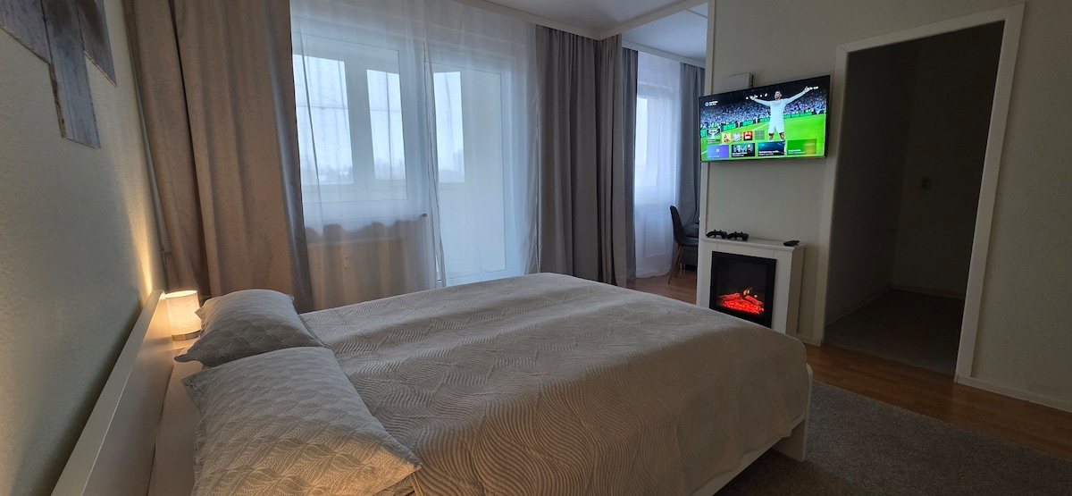 Internet: 50 megas download, 10 megas upload. Deutsch: (for english please use Google translate) Die ganze Wohnung ist völlig ausgestattet, es gibt ein Aldi supermarkt an der anderen Seite der Straße und die Stadtzentrum ist bequem zu fuß zu erreichen. Die Eingang zum park der Stadt ist 20 meter entfernt. Es gibt ein Biergarten mit wundervollem Essen in der mitte des Parks und ein berühmter Michelin (1) Restaurant sehr in der nähe.