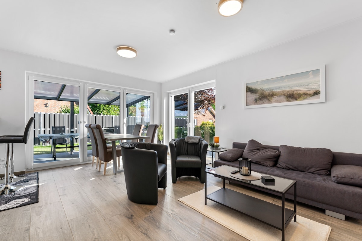 Herzlich Willkommen im frisch renoviertem Ferienhaus „Feine Düne“ Am Badesee in Tannenhausen/Aurich. Entfliehen Sie dem Alltag und genießen Sie unvergessliche Tage in unserem charmanten Ferienhaus, das direkt am malerischen Badesee liegt. Die wohnliche Atmosphäre laden zum Wohlfühlen und Entspannung ein und garantieren für einen schönen, erholsamen und ausgeglichenen Urlaub. Nur 50 Meter (1-2 min Flusslauf) vom Badesee entfernt, bietet es perfekte Erholung und entspannte Stunden am See. Aktiv+