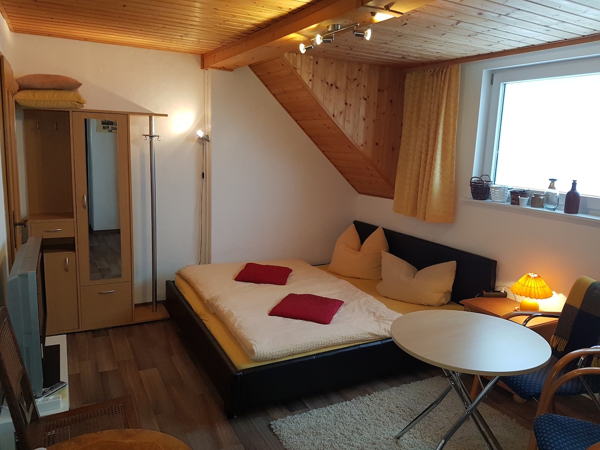 Gemütliche 2-Zimmer Wohnung in Zentrumsnähe. Supermarkt, kleiner Kiosk, Eisdiele und Krankenhaus um die Ecke. Öffentliche Verkehrsmittel 5 bis 10 Minuten zu Fuß entfernt. Plauener Innenstadt in 10 bis 15 Minuten fußläufig erreichbar. Wir bieten eine voll eingerichtete Wohnung, die perfekt für Kurztrips oder auch Langzeitaufenthalte geeignet ist. Auch Familen sind bei uns immer willkommen, auf Anfrage gibt es auch ein Babyreisebett. Gerne heißen wir auch internationale Gäste willkommen.