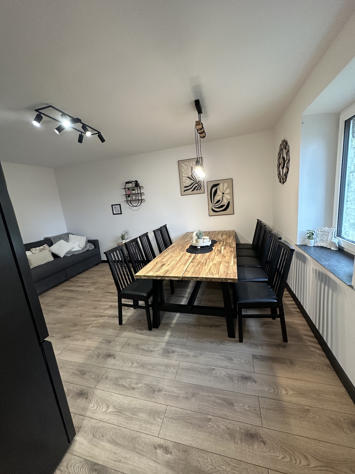Dom o powierzchni 150 m.kw. Trzy sypialnie (pościel, ręczniki), w pełni wyposażona kuchnia, Jadalnia stół na 10 os., Salon z tv (rozkładana sofa), piwnica z billardem, lodówka na alkohole, blaty barowe, sprzęt grający, tv.