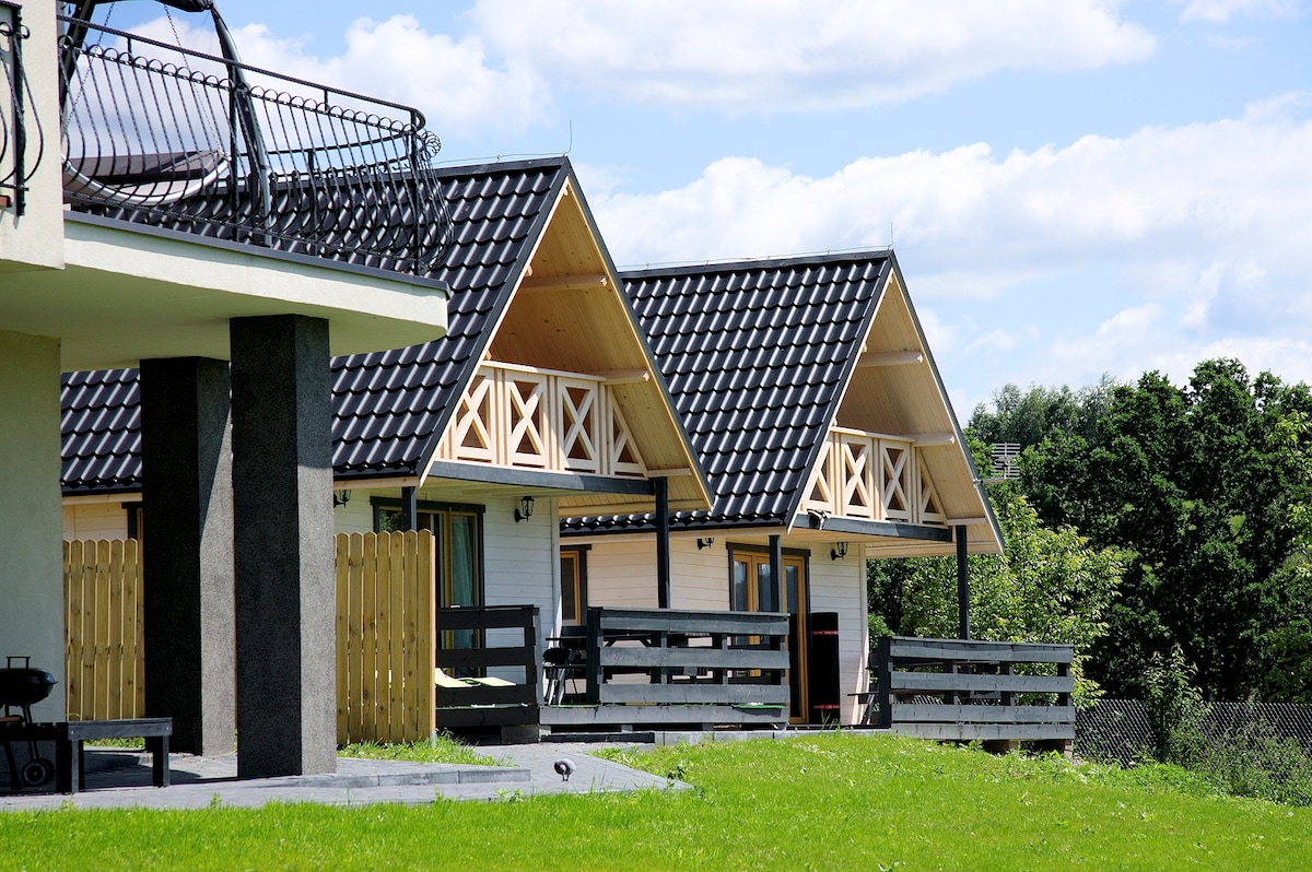 Zapraszamy na wypoczynek do malowniczej miejscowości położonej nad Jeziorem Żywieckim. Każdy z domków składa się z wyposażonego aneksu kuchennego połączonego z salonem z kominkiem "kozą"(drewno w cenie), klimatyzacją i TV oraz rozkładaną kanapą, łazienki z prysznicem. Piętro zajmują dwie osobne sypialnie. Domki przeznaczone są dla 6 osób. Na ogrodzonej posesji można bezpiecznie zaparkować samochody oraz zorganizować grilla. Atrakcją jest sauna w kształcie beczki.(w cenie) Serdecznie zapraszamy!