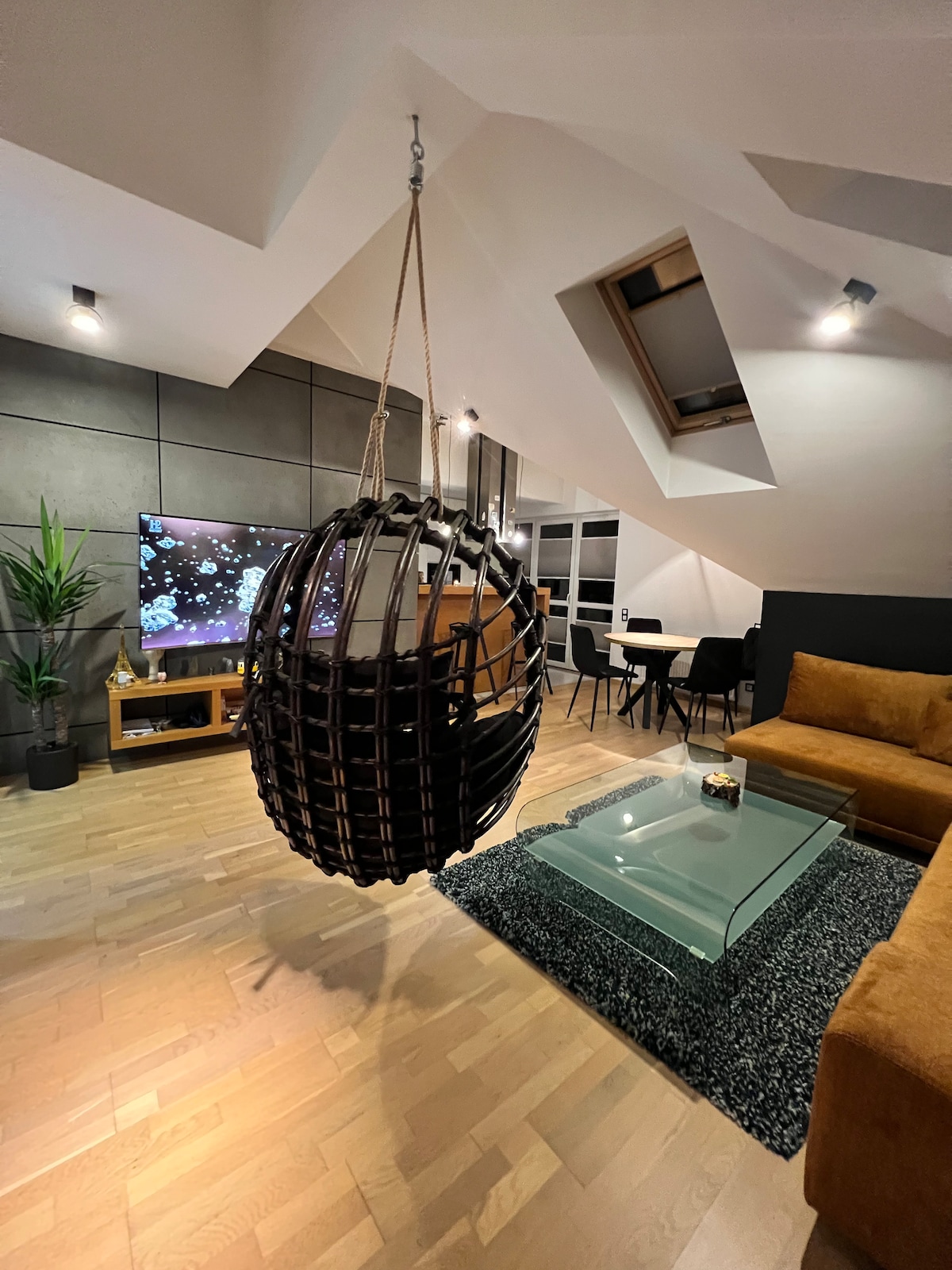 Relax in this unique place! Brilliant location next to the green areas of Bielsko, restaurants (cafes, pizzeria and restaurant), bakery, grocery store - all within a 2-minute walk. Additionally, there is a bus stop, a tennis court, but above all, popular mountain hiking and cycling trails (Enduro Trails) and a swimming pool (seasonal). We are a 10-min drive from the Dębowiec ski slope, the Szyndzielnia cable railway and the exit route to Szczyrk (12 km). Available access to HBO movies
