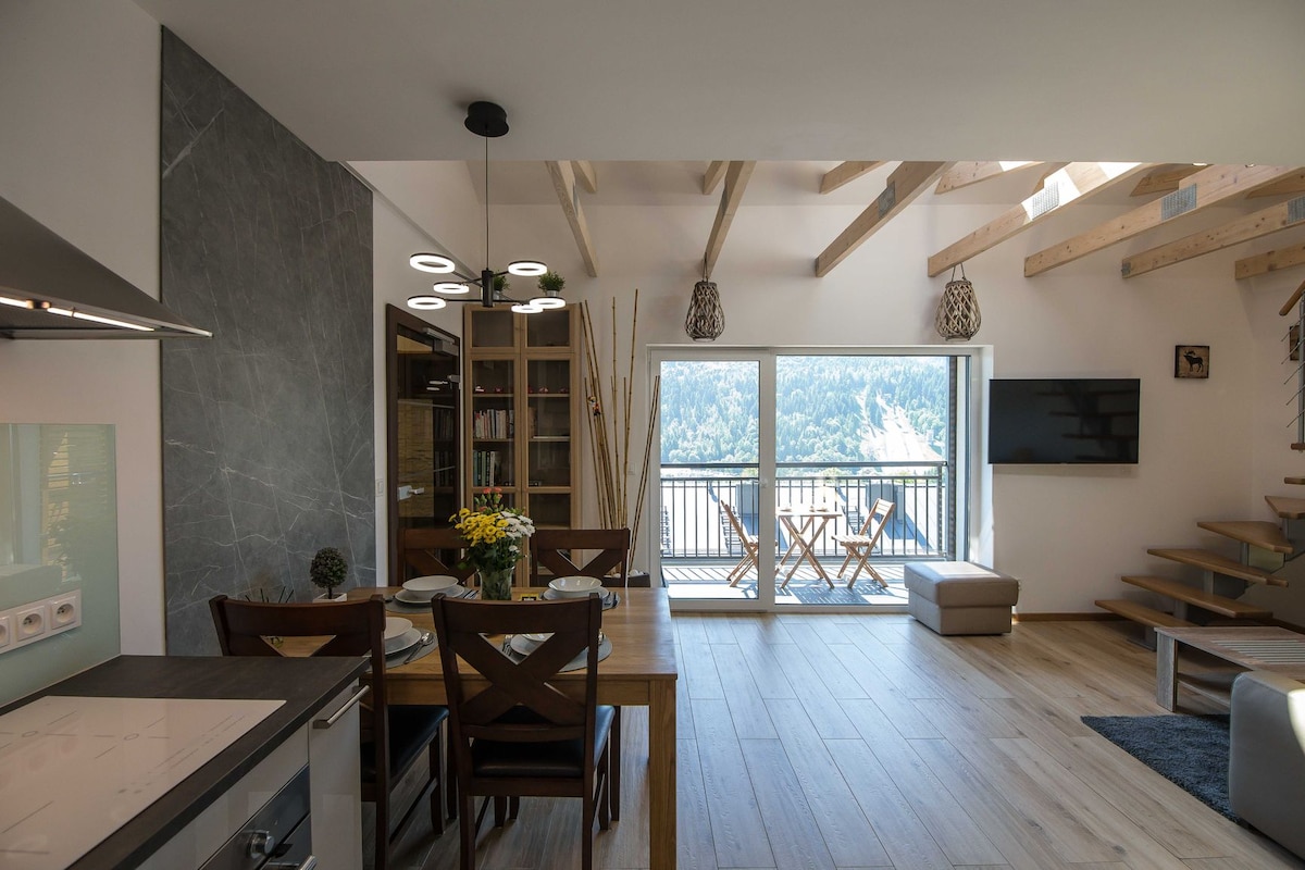 Apartament Centrum 4 jest idealny dla 2 osób, ceniących bardzo wysoki standard i szukających dla siebie czegoś wyjątkowego. Wnętrze zostało zaprojektowanie z najwyższej klasy materiałów i z dbałością o każdy szczegół. Dobra komunikacja sprawia, że apartament jest świetnym wyborem jeżeli planujesz załatwić sprawy biznesowe. Natomiast jeśli chcesz odpocząć, możesz cieszyć się bezpośrednią bliskością tras rowerowych, pieszych i wyciągów narciarskich.