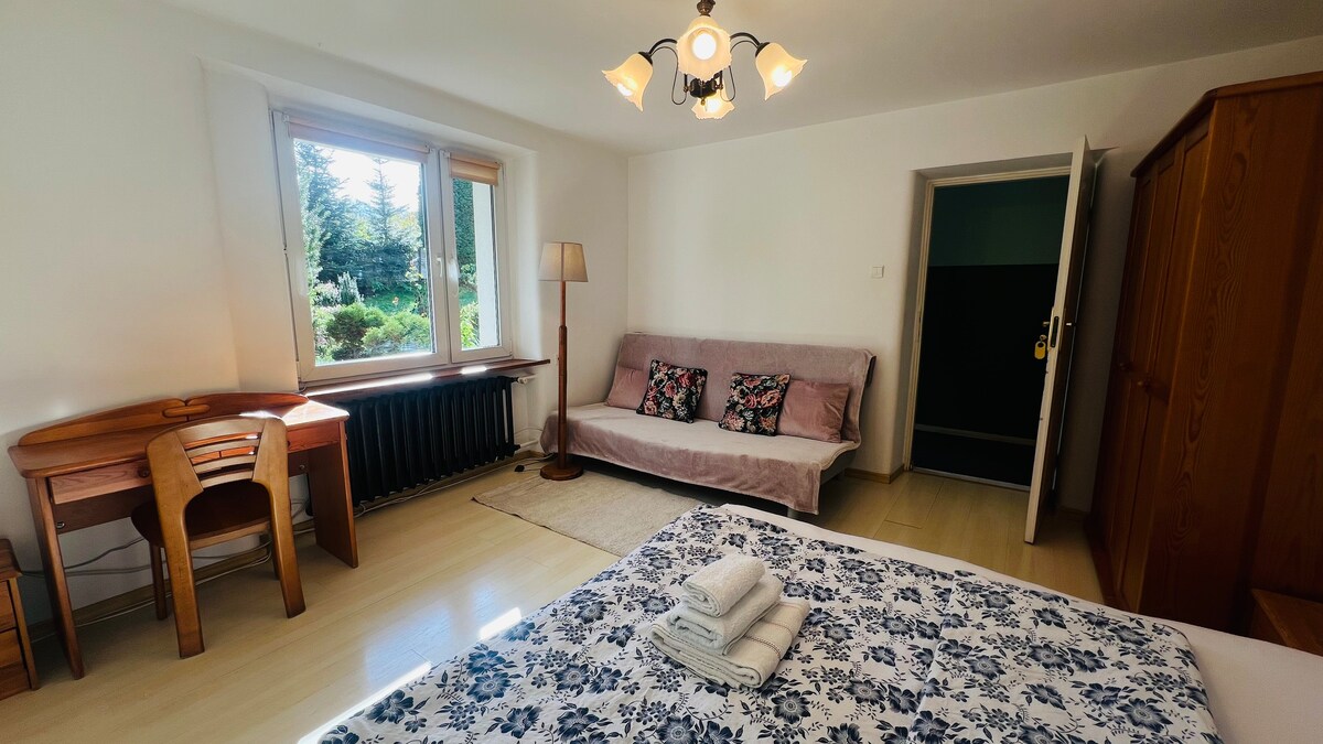 Serdecznie zapraszamy Państwa do naszej nowej nieruchomościowej Perełki - wyjątkowego apartamentu „SMRECEK”, znajdującego się w pobliżu Zakopanego, na Polanie Pająkówka. Apartament stanowi część, nowej posiadłości górskiej z zapierającym dech widokiem na Tatry. Został urządzony funkcjonalnie i nowocześnie - w standardzie PREMIUM. APARTAMENT JEST PRAWIE NOWY i od niedawna wynajmowany dla naszych gości. Wszystko pachnie nowością i świeżością :)